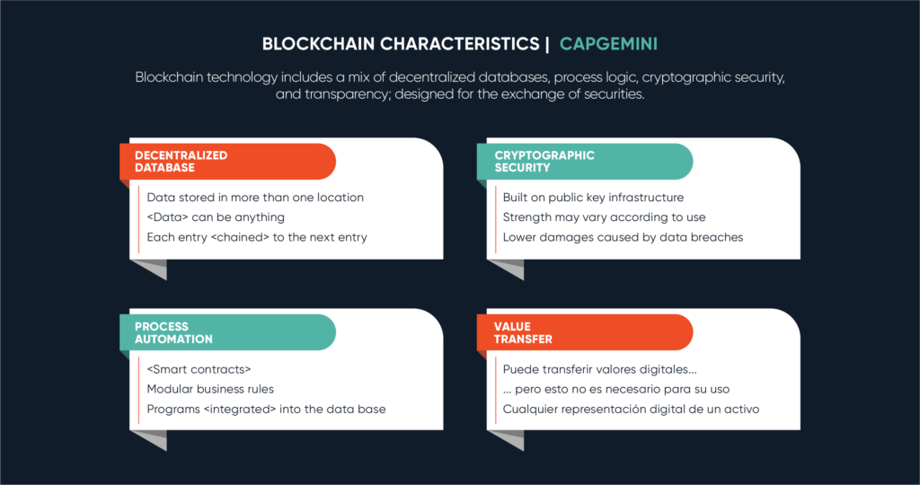 It helps to have traceability of data. While providing privacy and transparency through “smart contracts”. Which can be applied as business rules that are responsible for executing an action automatically. More details on these features can be seen in the image below: