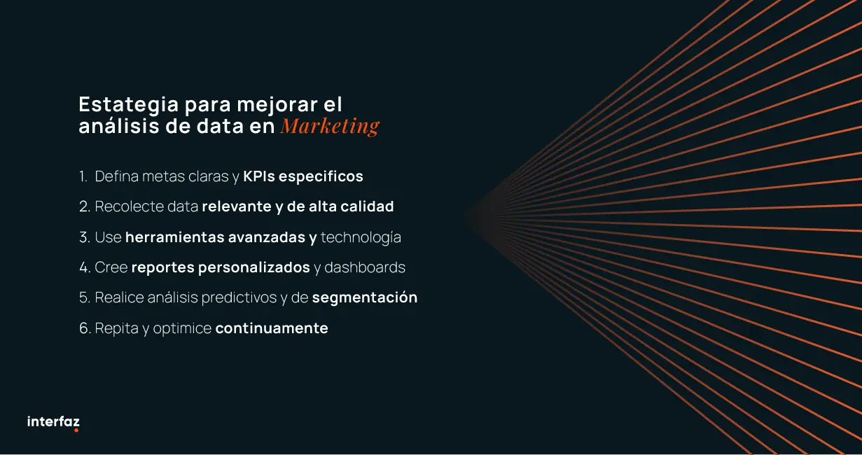Ahora que hemos explorado la importancia y los beneficios del análisis de datos en marketing, las herramientas y las tecnologías, es crucial profundizar en algunas estrategias prácticas que pueden ayudarte a mejorar tus capacidades en esta área y obtener información más valiosa para tus campañas. Aquí tienes una guía paso a paso para mejorar tu análisis de datos en marketing: