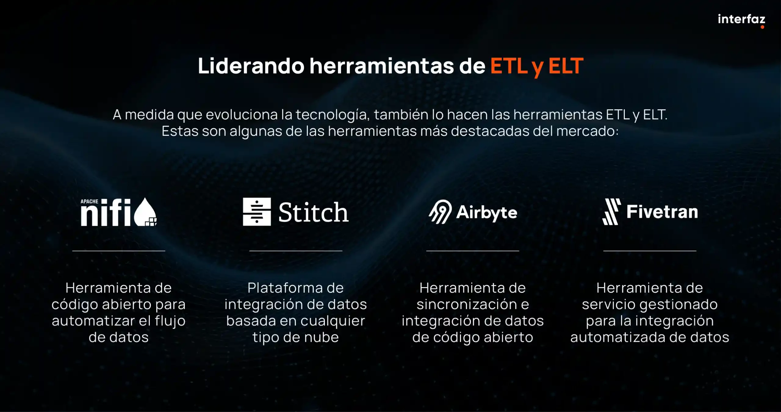 A medida que la tecnología evoluciona, también lo hacen las herramientas ETL y ELT. A continuación, se presentan algunas de las herramientas más destacadas del mercado: