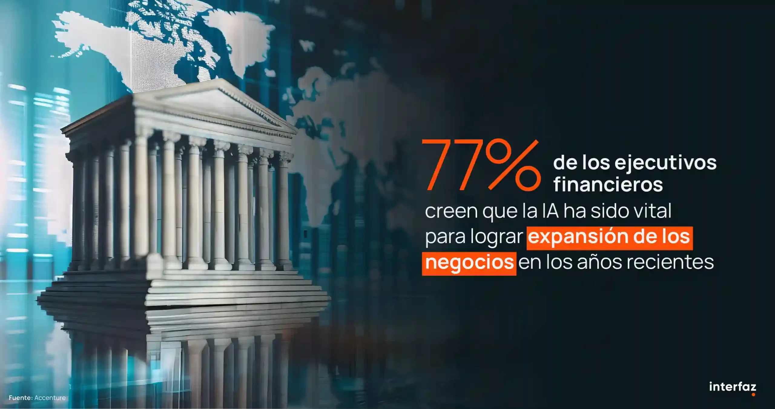 Accenture informa que el 77% de los ejecutivos financieros cree que la IA ha sido crucial para el crecimiento del sector en los últimos años, especialmente en factores clave.