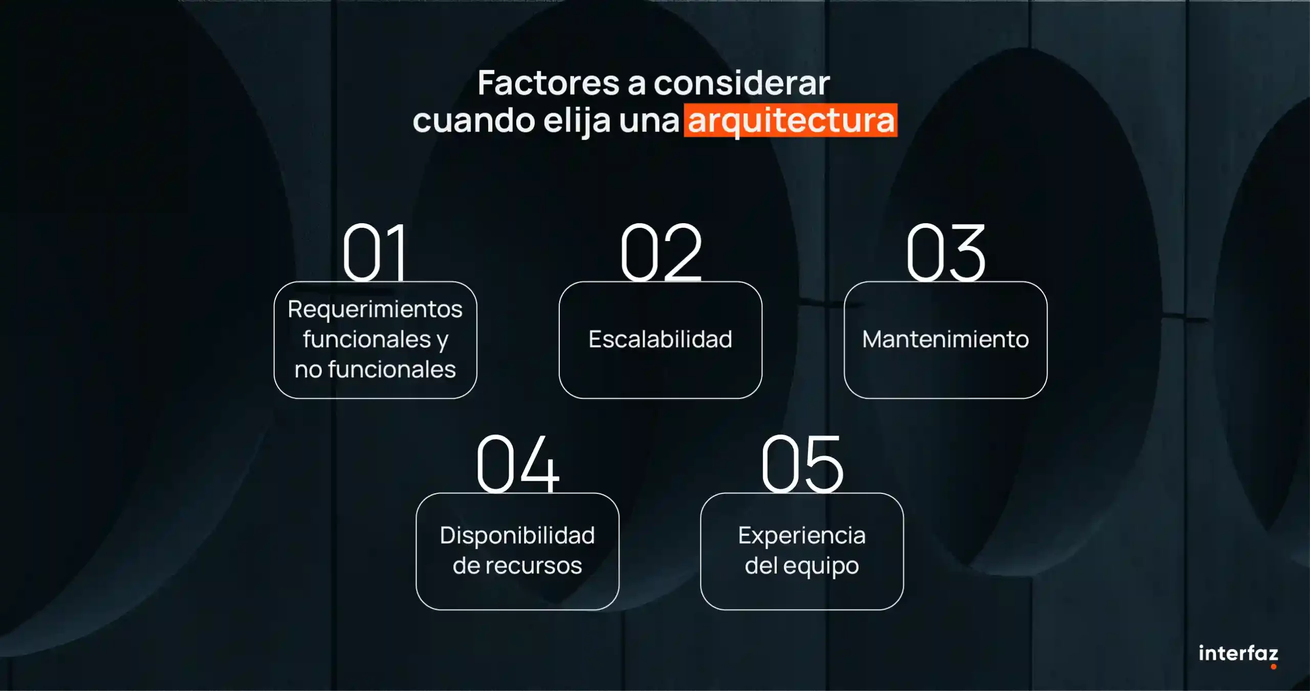 Considere las habilidades y la experiencia de su equipo de desarrollo. Implementar una arquitectura compleja sin la experiencia adecuada puede provocar errores y retrasos.